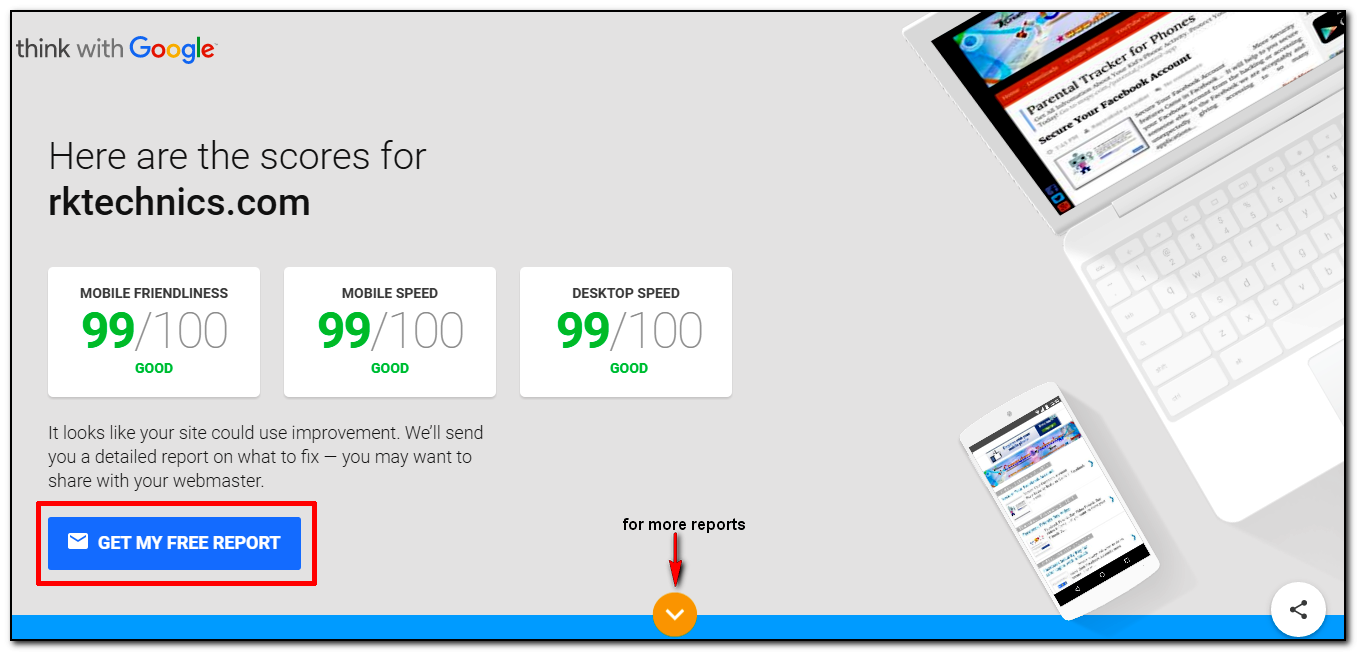 After Testing the score will be display about your website . so i am giving some points below about it. and if you want to get your report on your mail simple click on GET MY FREE REPORT